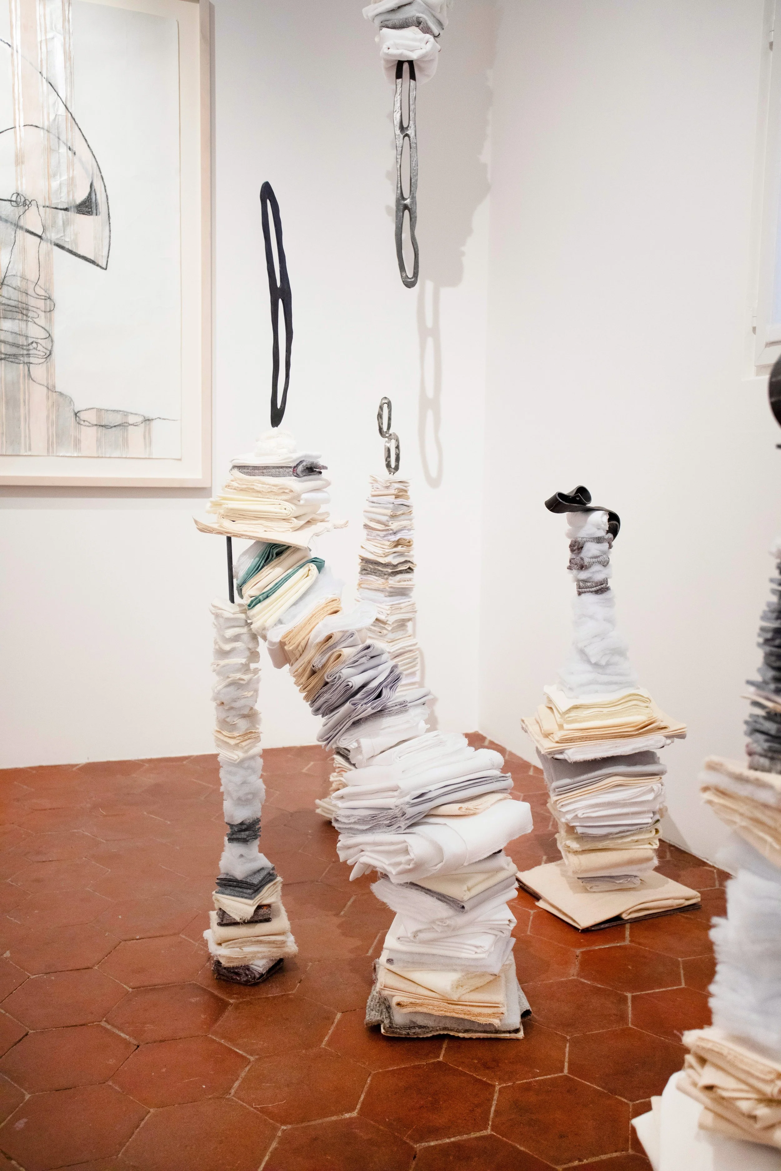 Studio Everywhere, 2025 / Vue d’exposition : acier forgé, impressions digitales, tissus / Dimensions variables / Crédits Photos : Hélène Janicot